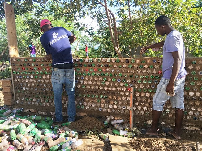 Matènwa would like to encourage that people use plastic bottles. We just finished permanent housing for 4 families in Matènwa. We used new low cost technology that reduces plastic waste litter and strengthens walls against natural disasters. Price tag $2500US.