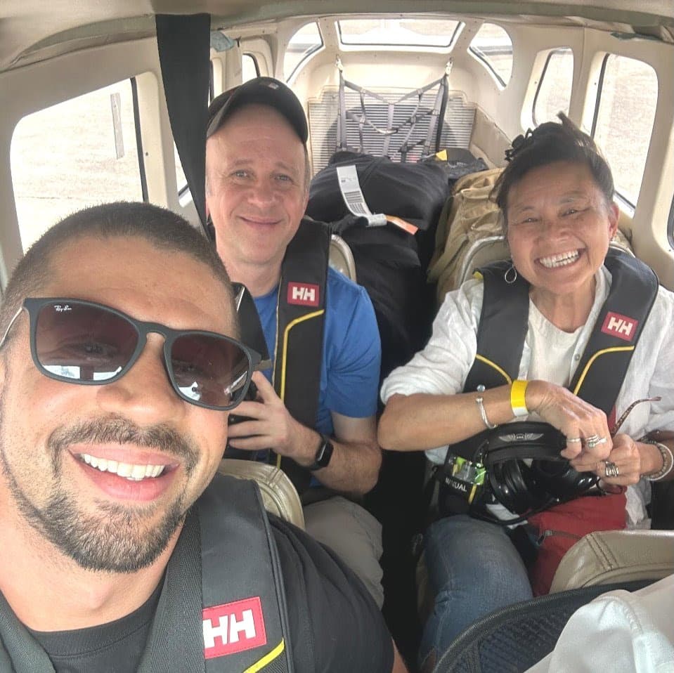 We traveled first by small plane from Cap Haitian to Lagonav Island. Then by motorcycle up the mountain to Matènwa, about an hour and a half ride. (Photo: Vince, me, and Chris on our flight to Lagonav Island.)