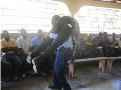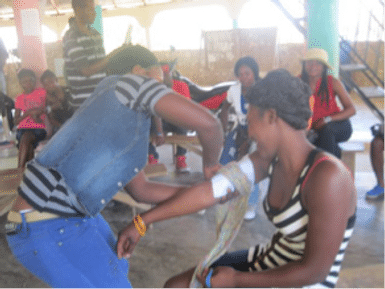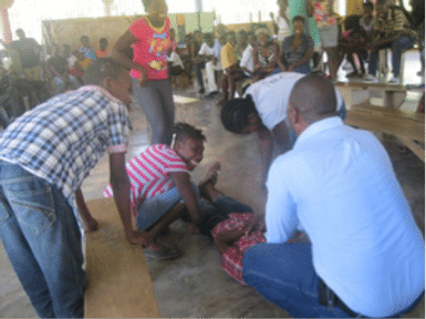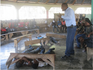 To increase knowledge of disaster risk and preparedness, Nickson Jean Louis, a principal in our LKM school network, facilitated a training for secondary school students and teachers. He covered how individuals can protectlapril15 2april15themselves and assist others during a natural hazard or major accident. He said that people who are injured during a disaster sometimes die because untrained rescuers lack the proper lifting and carrying techniques to safely transport them.