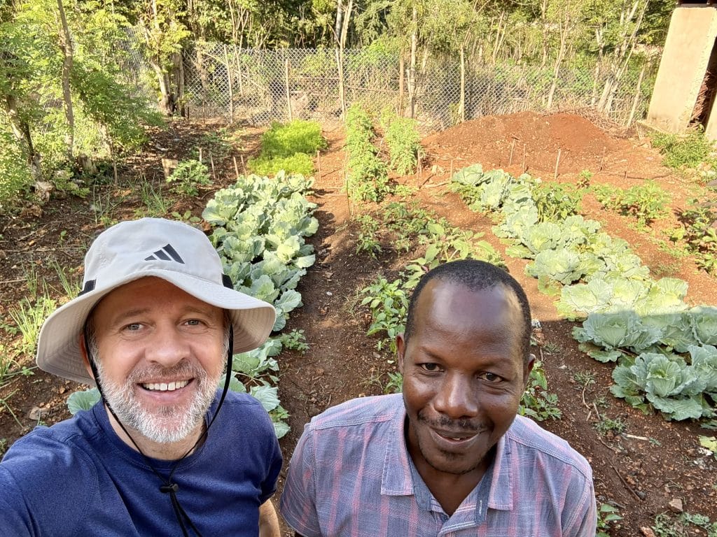 Lucso Alfred, a co-founder of the school, shows me around the school garden.