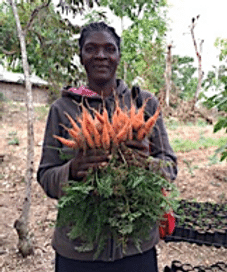 3. Parent harvesting carrots.