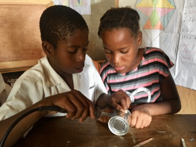 The act of repurposing is major for Haiti since there is no developed waste management system. In honor of Earth Day, MCLC students collaborated to develop everyday items from tin cans and plastic bottles. One set of students (in the first and second picture below) created cups as well as coffee and tea mugs. Another student (third picture below) created a trash bin.