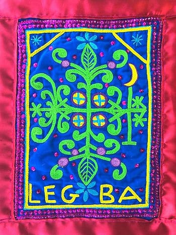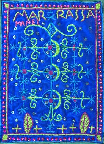 Atis Fanm Matènwa, or Women Artist Matènwa, is a longstanding Women’s Haitian Arts collective in the Matènwa community in La Gonave. Women from the Matènwa community create and customize beadwork, embroidery, painted silk scarves and other Haitian art by hand. Some of their exquisite customized art integrated symbols from the Haitian Vodou religion. Let’s take a look at what some of these symbols mean.