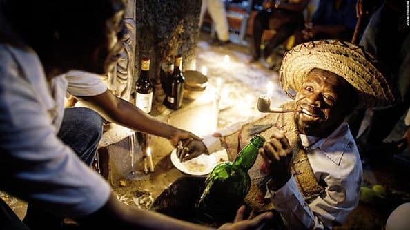 All ceremonies begin and end with Papa Legba, as it is he who opens the gates to the world of the Invisibles, much like St. Peter traditionally throws wide the gates to heaven. There can be no communication with any of the other Loas without consulting him first. His gift for linguistics enables him to translate the requests of humans into the languages of the Spirits, the Orishas, and the Loas. Voodoo practitioners place representations of Papa Legba behind the front door of their home in order to clear the path, accomplish goals, and to bring his protection”.