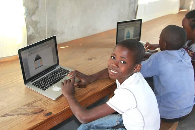 The students have access to educational games in Kreyòl developed for MCLC by MIT professor Michel deGraff and the MIT Haiti Initiative. These games, which teach math through soccer, cooking, and other fun activities, are favorites for the students. Here, a fourth-grader plays “Machann Manje” (Food Merchant).